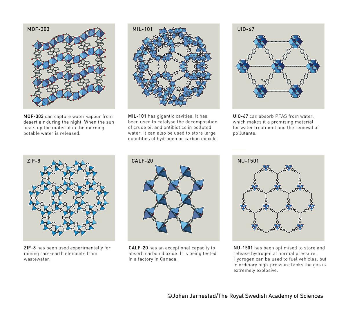 The Nobel Prize laureates in chemistry 2025 have created molecular constructions with large spaces through which gases and other chemicals can flow. These constructions, metal-organic frameworks, can be used to harvest water from desert air, capture carbon dioxide, store toxic gases or catalyse chemical reactions.